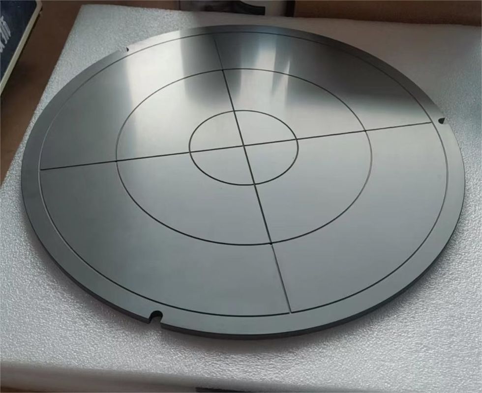 This product is a high-performance silicon carbide structural ceramic circular plate manufactured through advanced reaction-bonded or pressureless sintering processes. It features a distinctive silver-gray metallic luster and an extremely hard, wear-resistant surface. The design is precision-engineered with concentric rings and cross-hatched lines on the face for positioning or media distribution, along with standard mounting holes around the periphery for easy and secure installation. Combining superior mechanical, thermal, and chemical properties, this component is an ideal solution for critical applications in extreme operating conditions.